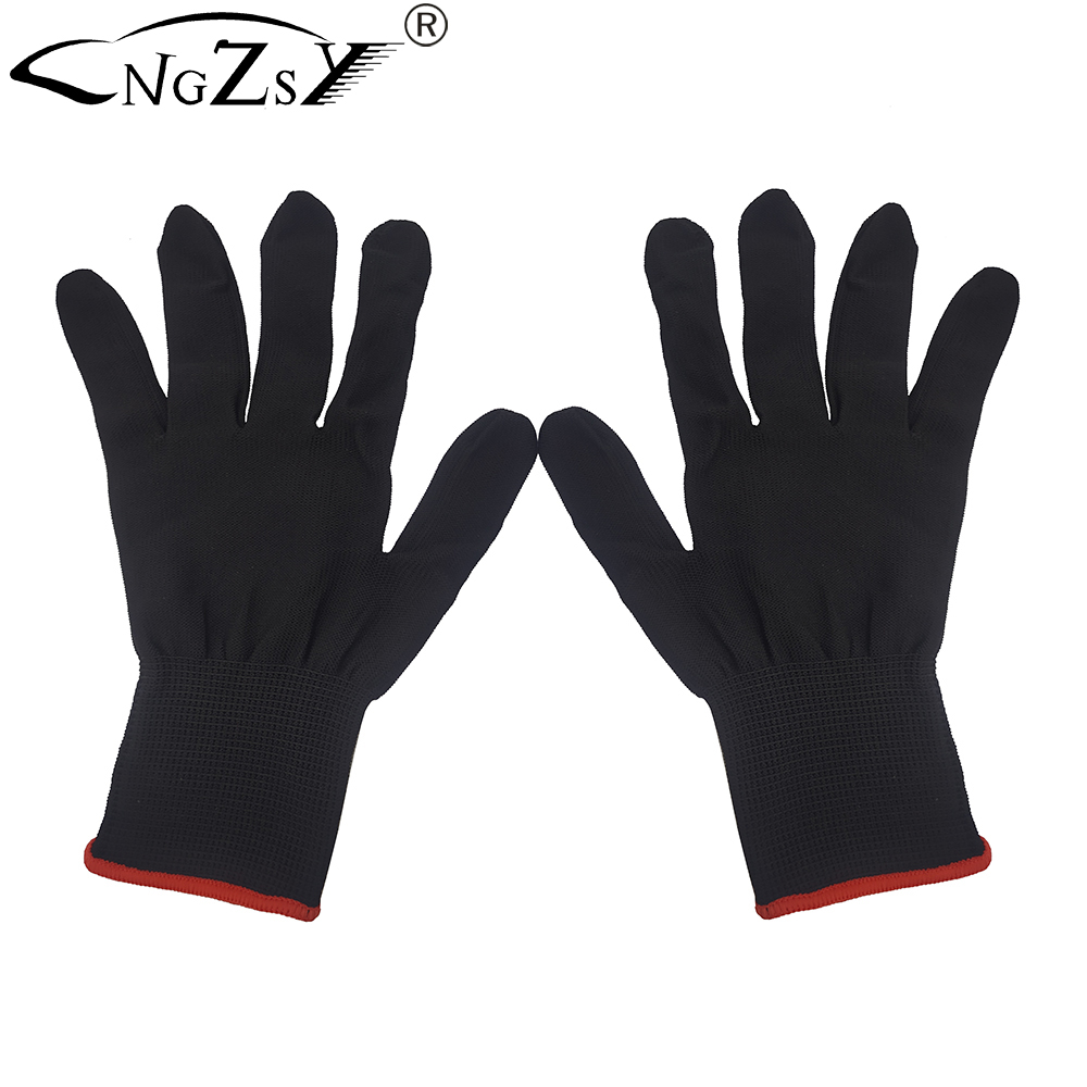 زوج من القفازات السوداء للفحص والعمل من النايلون